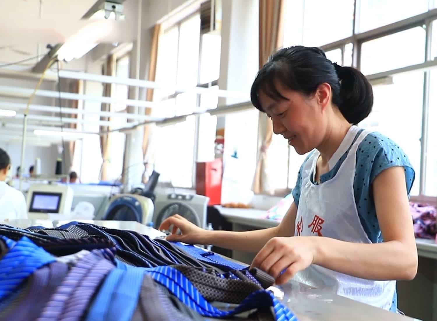 Finished Tie Inspector, she inspects every tie in detail, serving as our factory's secret weapon for quality assurance
