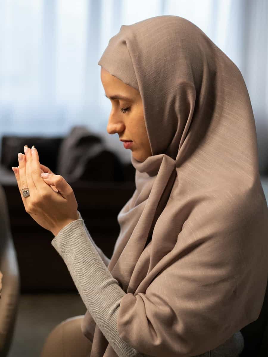 a traditional headscarf, often brightly patterned, worn for style and comfort.